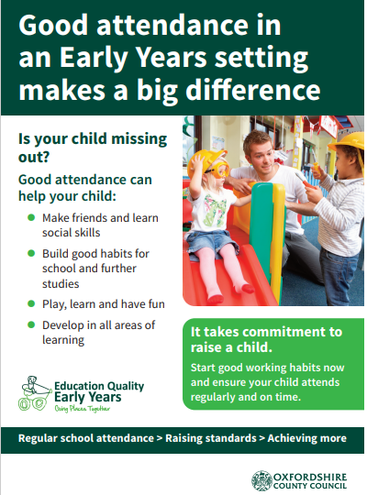 The minimum level of attendance for this school is 95% attendance and we will keep you updated regularly about progress to this level and how your child’s attendance compares. If your child’s attendance falls below 93% we will inform in writing and arrange a meeting with you. We may also contact the Oxfordshire County Council attendance team for further advice.