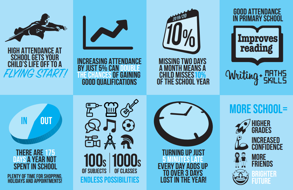 Ensuring your child’s regular attendance at school is your legal responsibility and permitting absence from school without a good reason creates an offence in law and may result in prosecution.