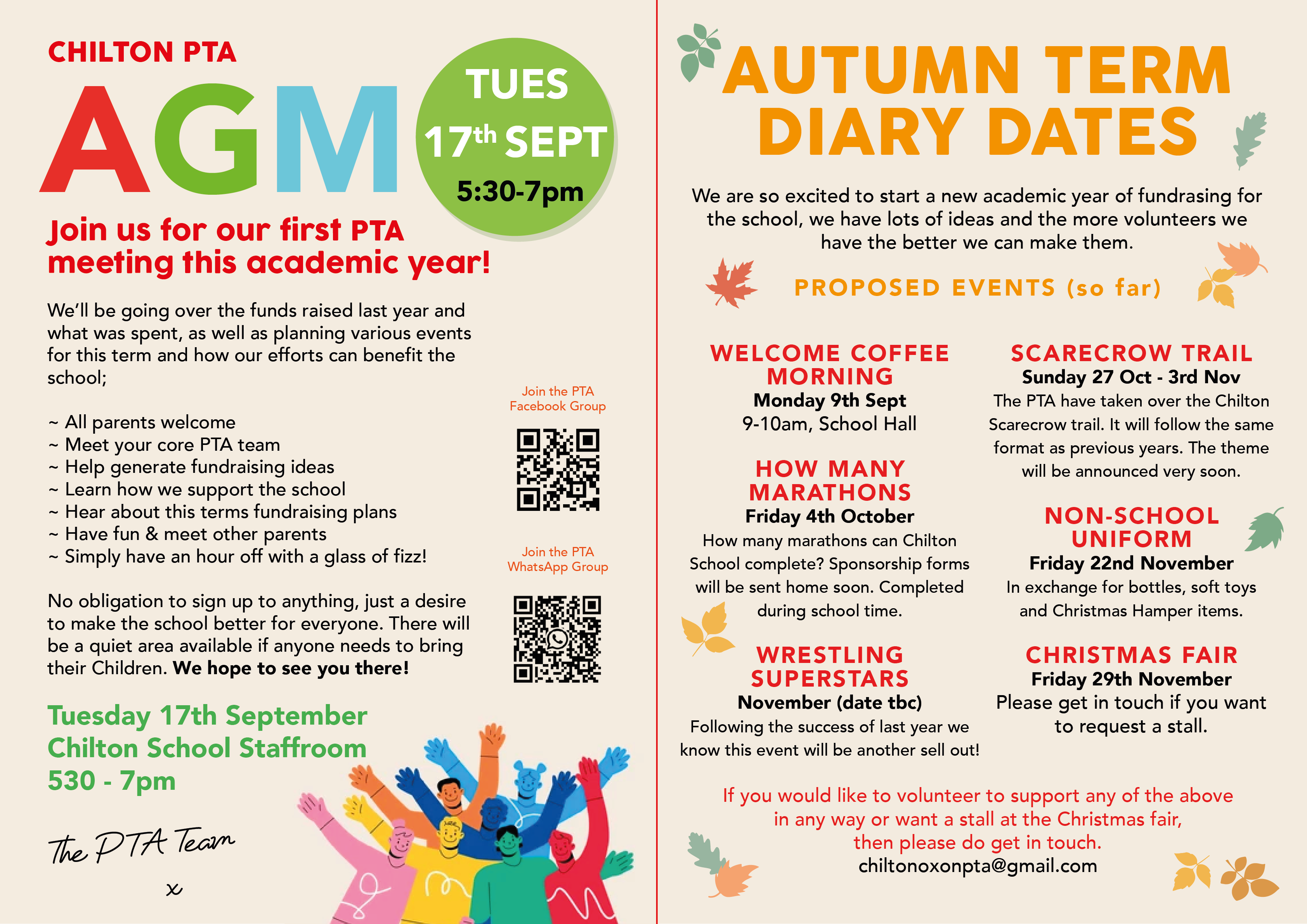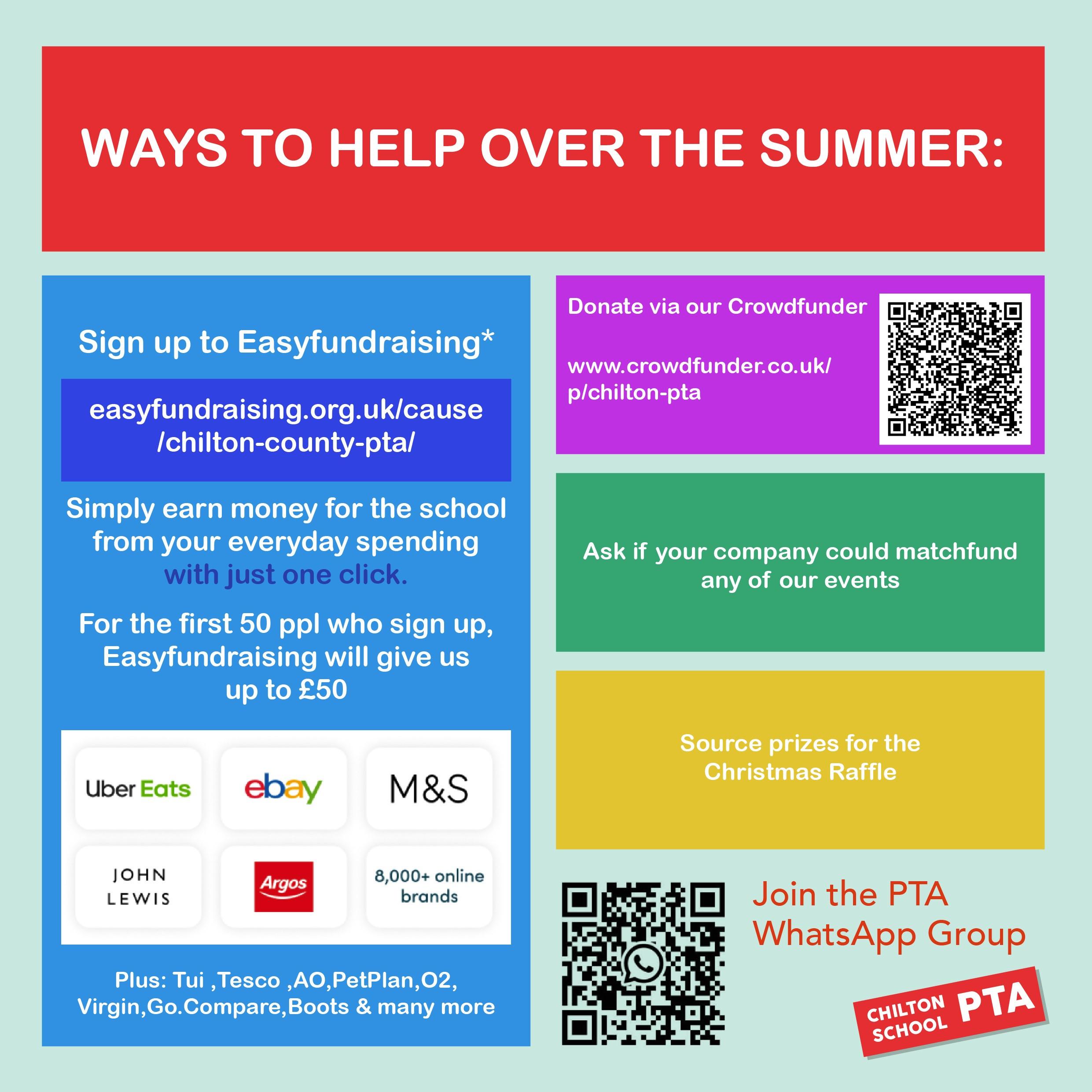 We want to be able to keep the parents of Chilton School up to date with PTA plans, as there are many ways you can support us without giving up lots of time ��