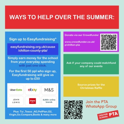 We want to be able to keep the parents of Chilton School up to date with PTA plans, as there are many ways you can support us without giving up lots of time