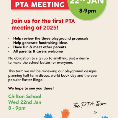 Thank you to all parents who attended our first PTA meeting of 2025. It was lovely to see some new faces and show you the playground designs so far. These will be developed over the next term and put to a vote within school to see which one will win!