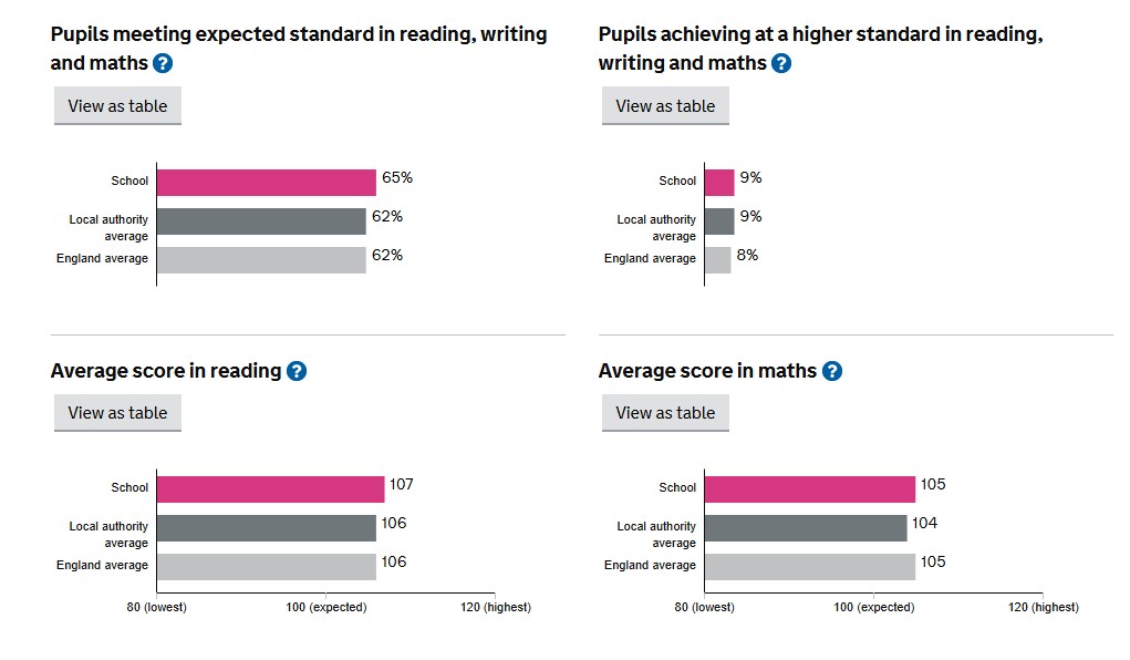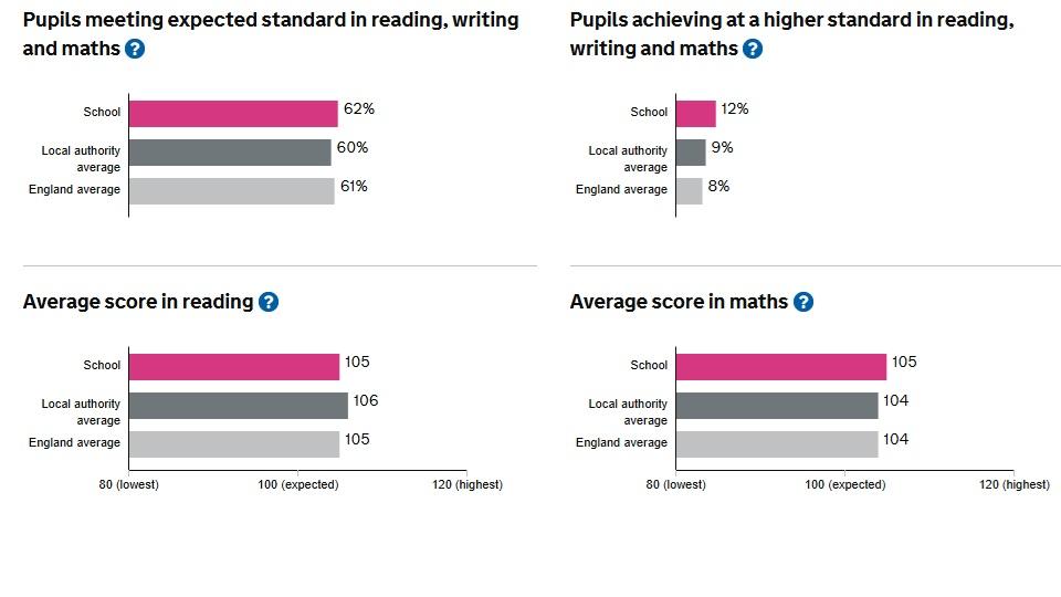 Click here to see the full Department for Education Performance Tables for Chilton Primary School, which includes our average scaled scores and more detailed information. A summary of the key results are shown below.